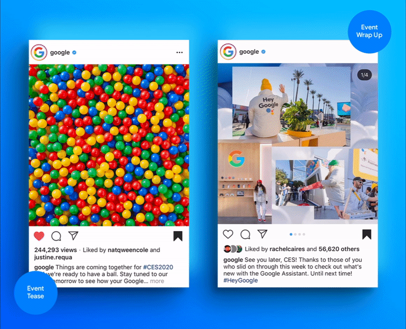 The objective: increase earned conversation and excitement around the event on social. On top of building hype with posts on Google’s owned channels, we gave event-goers a reason to share with a ball pit cam. Shot on the Google Pixel in partnership with Smilebooth, the branded images were sent to attendees’ phones. An AR ball pit selfie lens let fans at home join in on the fun, while simultaneously entertaining attendees waiting in long lines to enter the experience.