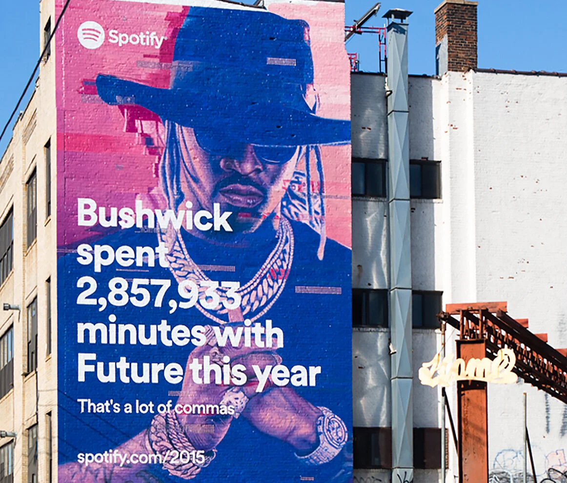 To promote Spotify’s fifth annual Year in Music, we took a hyper local approach to their first ever out-of-home campaign with ads that provided insight into individual neighborhoods’ listening habits.