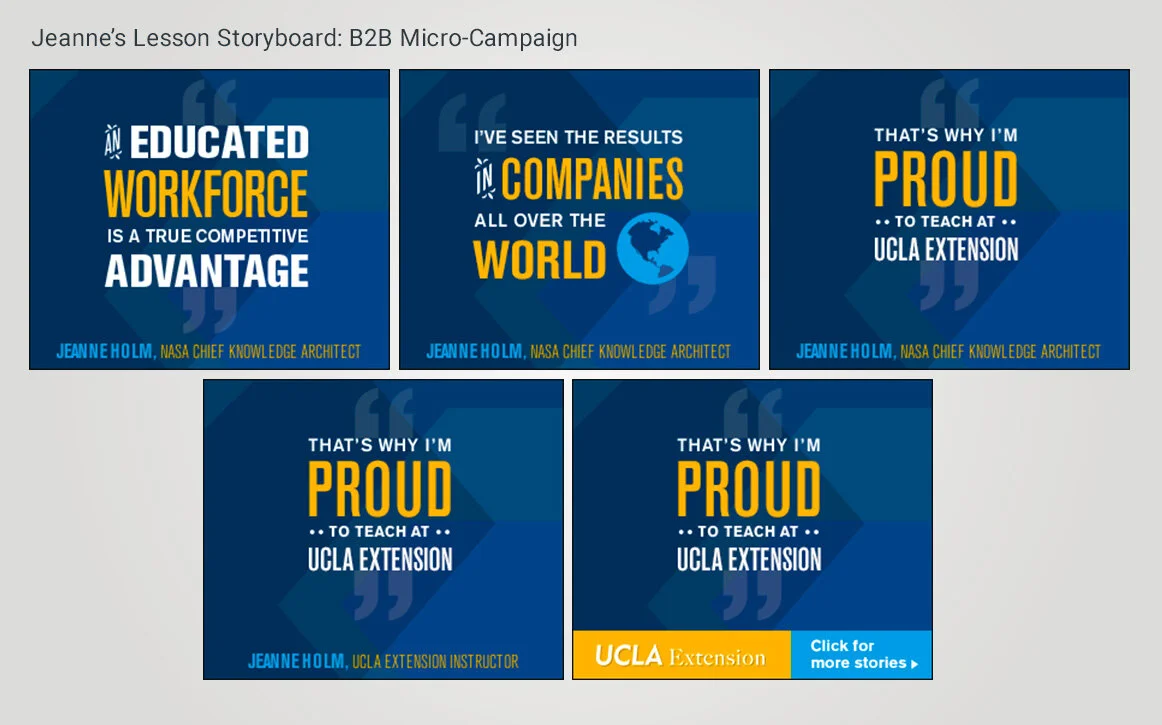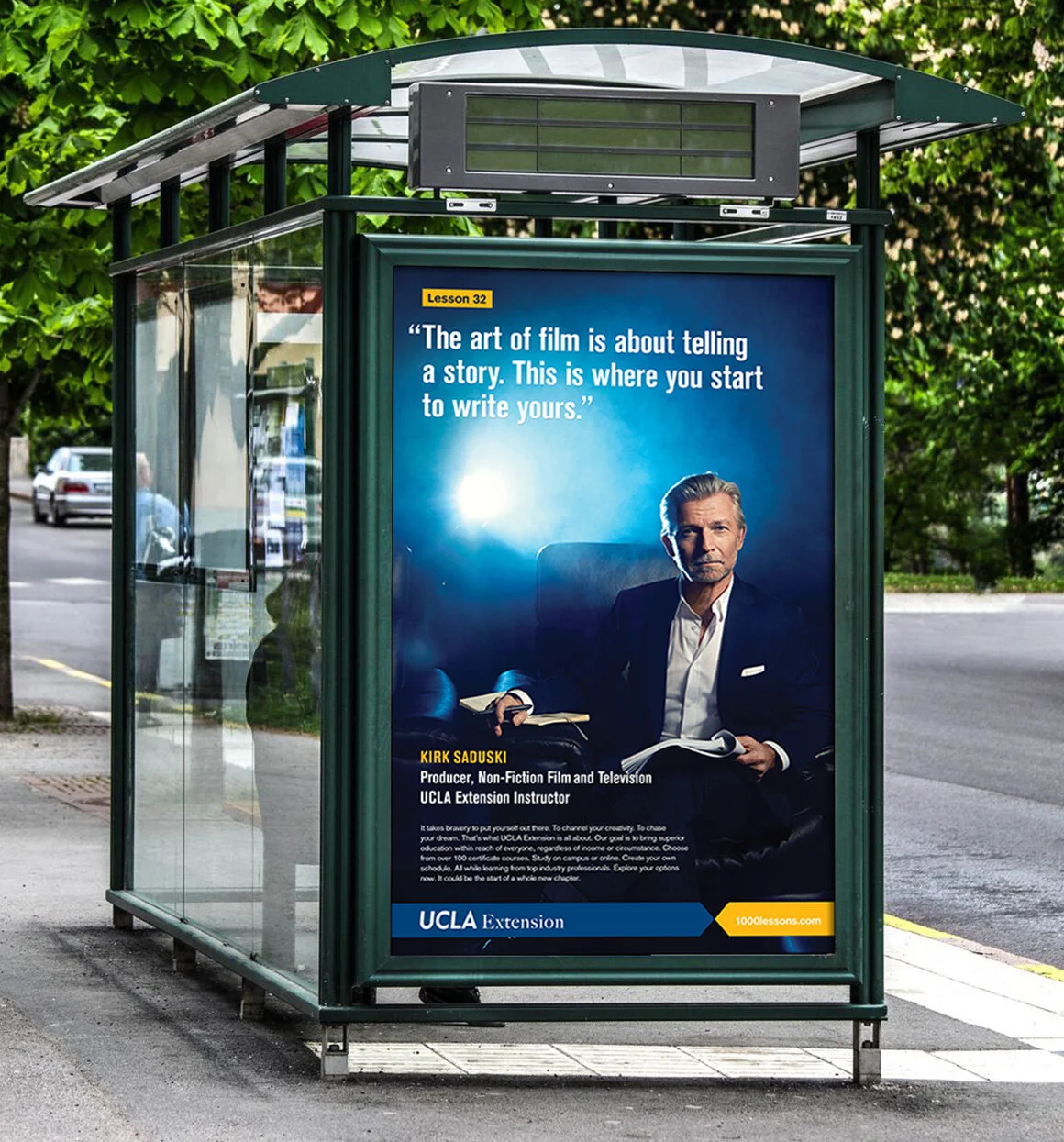 These remarkable individuals became the pillars of our campaign. We asked them to share a piece of knowledge they had gained throughout their career or education, creating a collection of snackable lessons. These teachable moments came together to form our “1,000 Lessons” campaign. Each creative execution featured one of the mini-lessons, and drove back to the campaign microsite where you could see them all alongside the impressive faculty and alumni, learn more about the school, and sign up for classes.